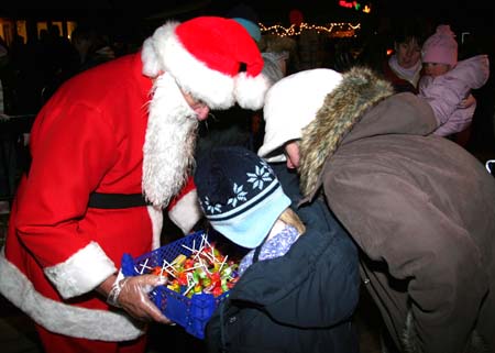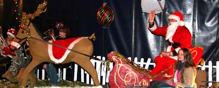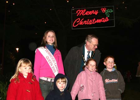 Father Christmas arrives on his Sleigh while Verwood's Mayor - 2004 / 5 (Mike Daymond) and the Verwood Carnival Queen for 2005 switches on the Christmas lights.