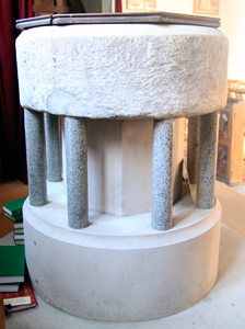 The massive, rugged bowl is of Saxon/Norman origin, and