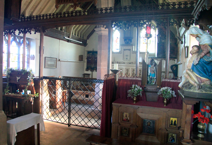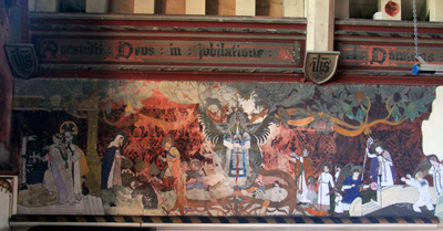 Latin along the roof beams celebrate the triumph of the Lord, risen from