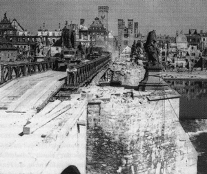 On April 3, 1945, Würzburg was attacked by the US 12th Armored Division and US 42nd Infantry Division in a series of frontal assaults masked by smokescreens. The battle continued until the final German resistance was defeated 5 April